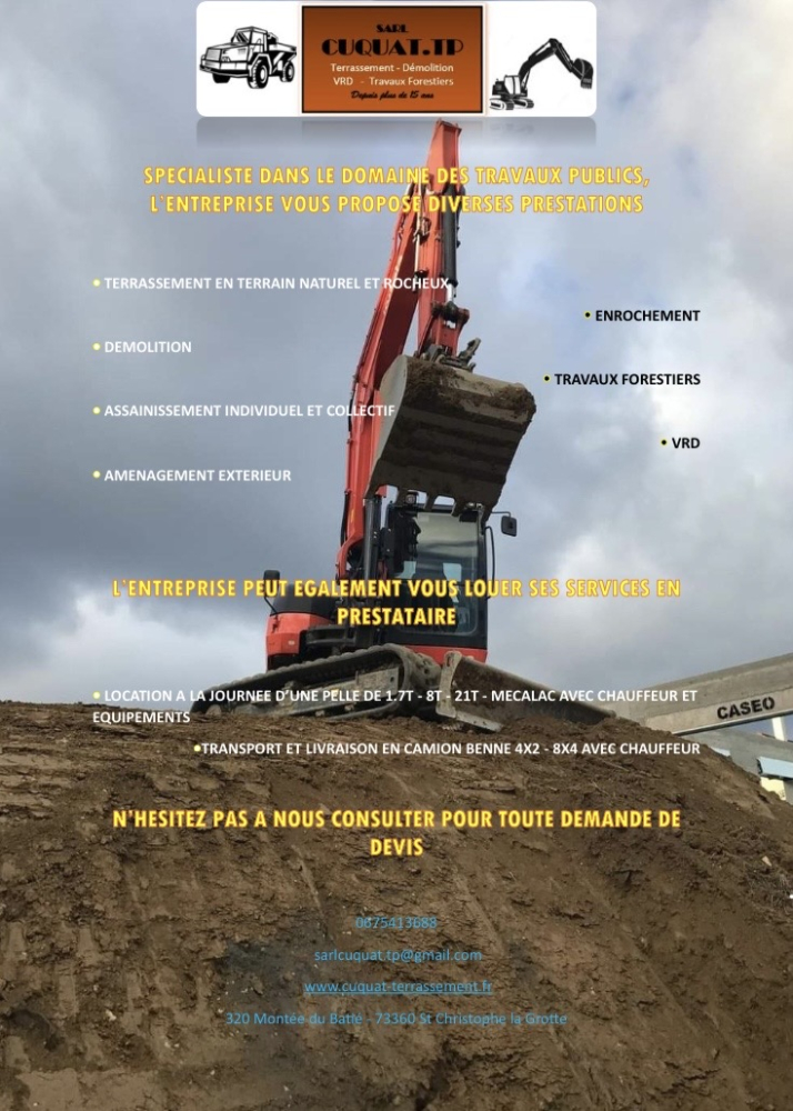 Zoomer POSTÉ LE 01/02/2026 L'entreprise vous propose multiples services dans le domaine du terrassement. N'hésitez pas à nous contacter pour la réalisation de vos projets.